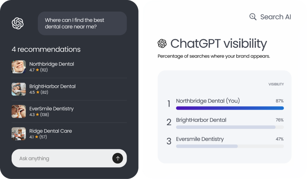 This is where Birdeye Search AI extends traditional competitive intelligence. It monitors how your reputation signals translate into visibility across search engines and AI-driven discovery platforms.