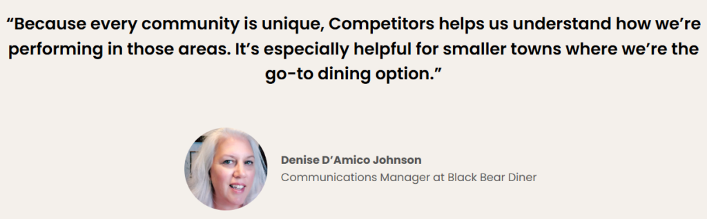 For a brand expanding into new communities, context matters. Competitors’ AI helped Black Bear Diner understand how they compared to nearby dining options and what guests valued in each region. Regular reporting cycles made it easier to track progress and intervene early when locations began to slip.