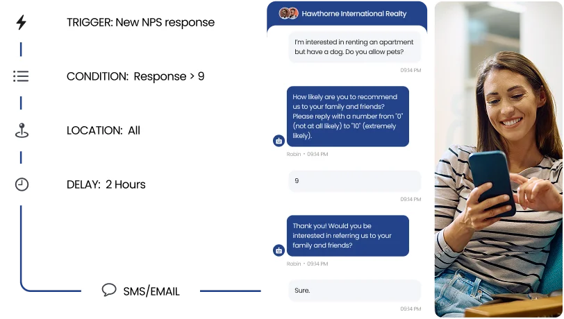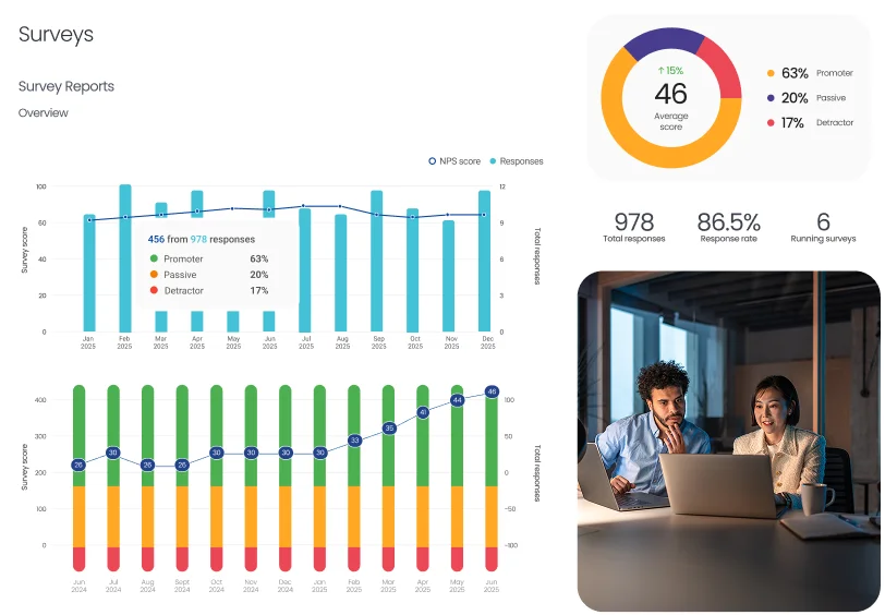 Through automated survey campaigns, requests can be sent on autopilot at key moments, such as after an interaction, ensuring timely and relevant feedback collection.