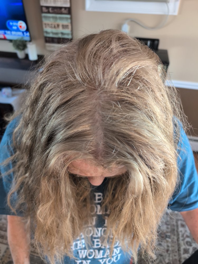 The blowout was Excellent ! I once was blonde I'm now dark with purple hues throughout my hair that they claim they can't FIX . You know what that means they don't want to deal with you anymore . I use to just get my roots , this time I did a all over with the same colors I had always used I don't see where it got all screwed up ?? Plus my roots that frame my face which are white never got colored there back I have no idea what I can do to get back to my dirty blonde hair ! Thanks for Nothing MR